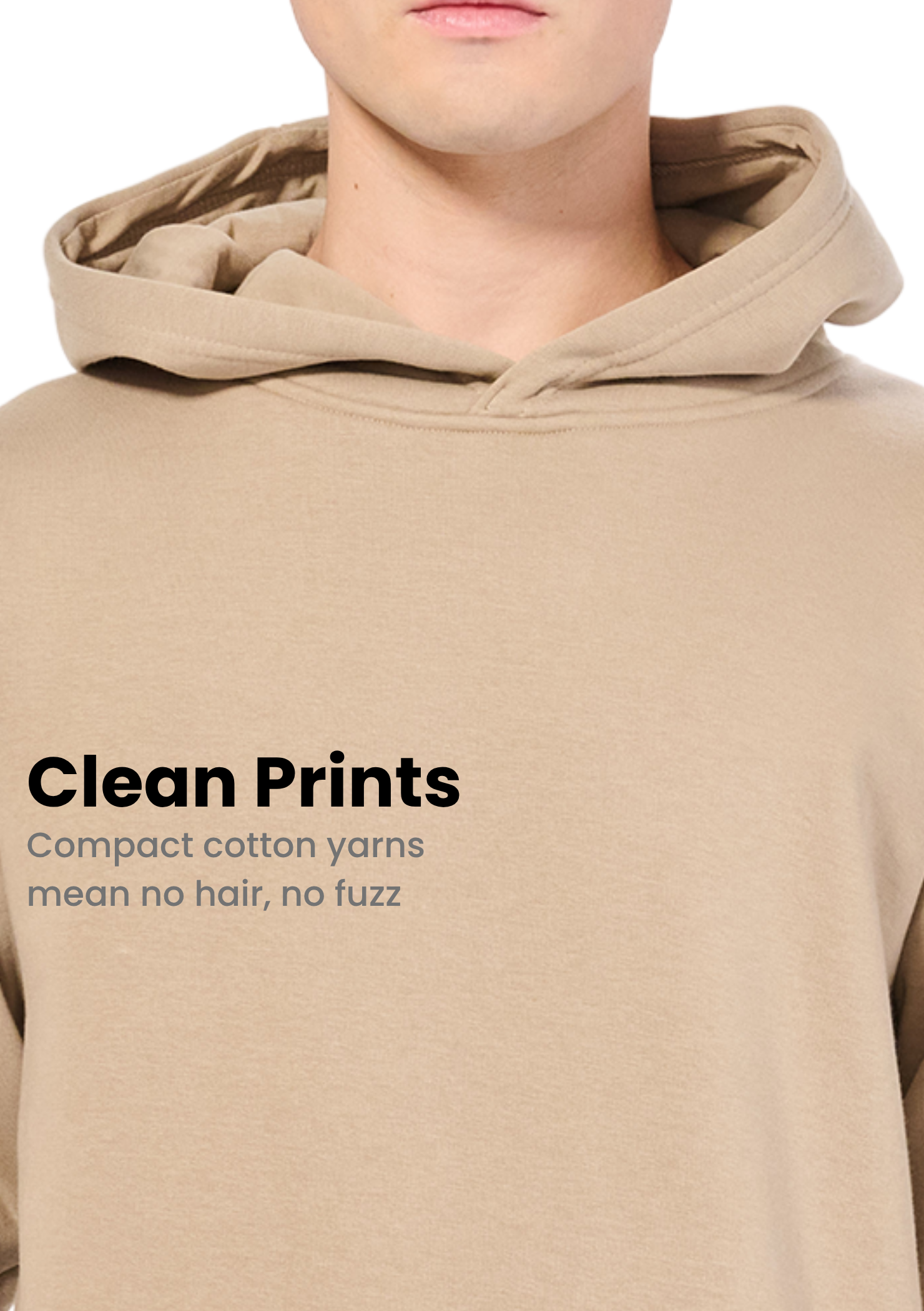The 100% cotton face and low-hair surface make the 7102 Hoodie perfect for Screenprint, DTG, and DTF printing, delivering sharp, vibrant, and long-lasting graphics. Its clean design provides the ideal blank canvas for both bold streetwear branding and refined corporate logos. The hoodie also features a moon patch at the neck, allowing brand labels to be applied smoothly on a flat surface instead of brushed fleece — ensuring a professional, premium finish for rebranding.